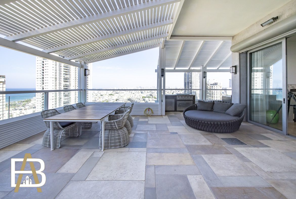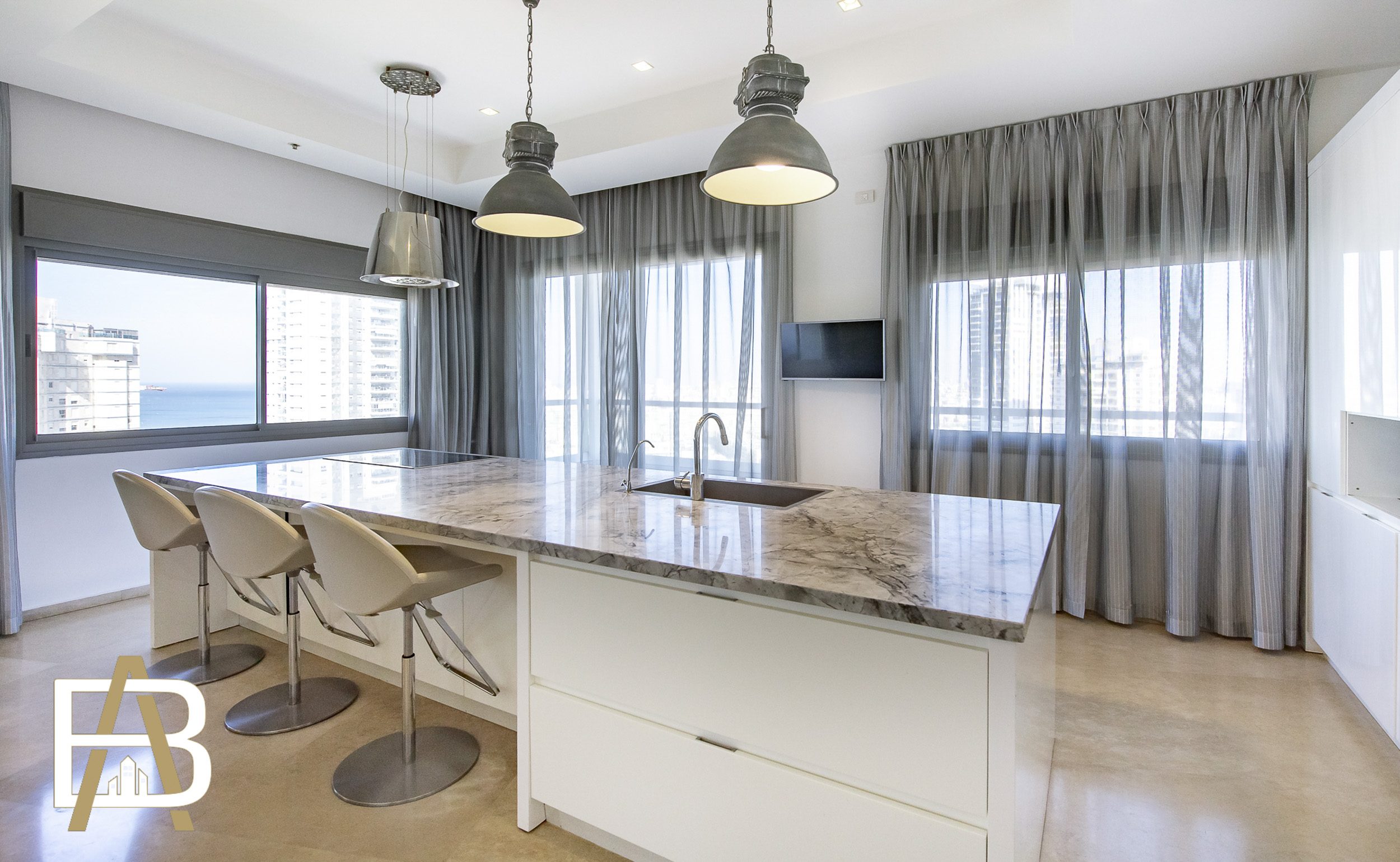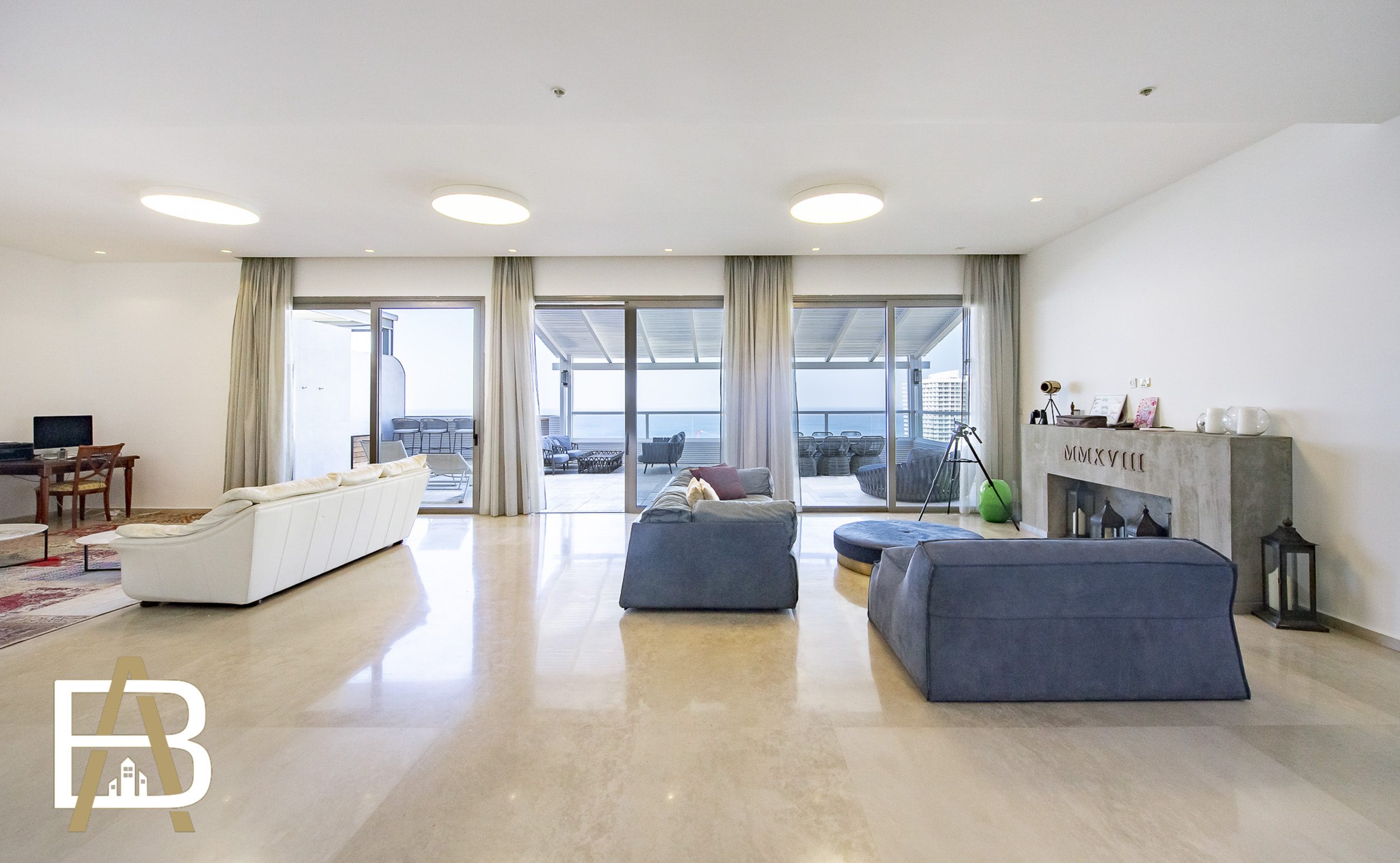 בקו ראשון לים, בקומה 23, פנטהאוז יוקרתי ומרווח עם 6 חדרים בעיצוב ייחודי.