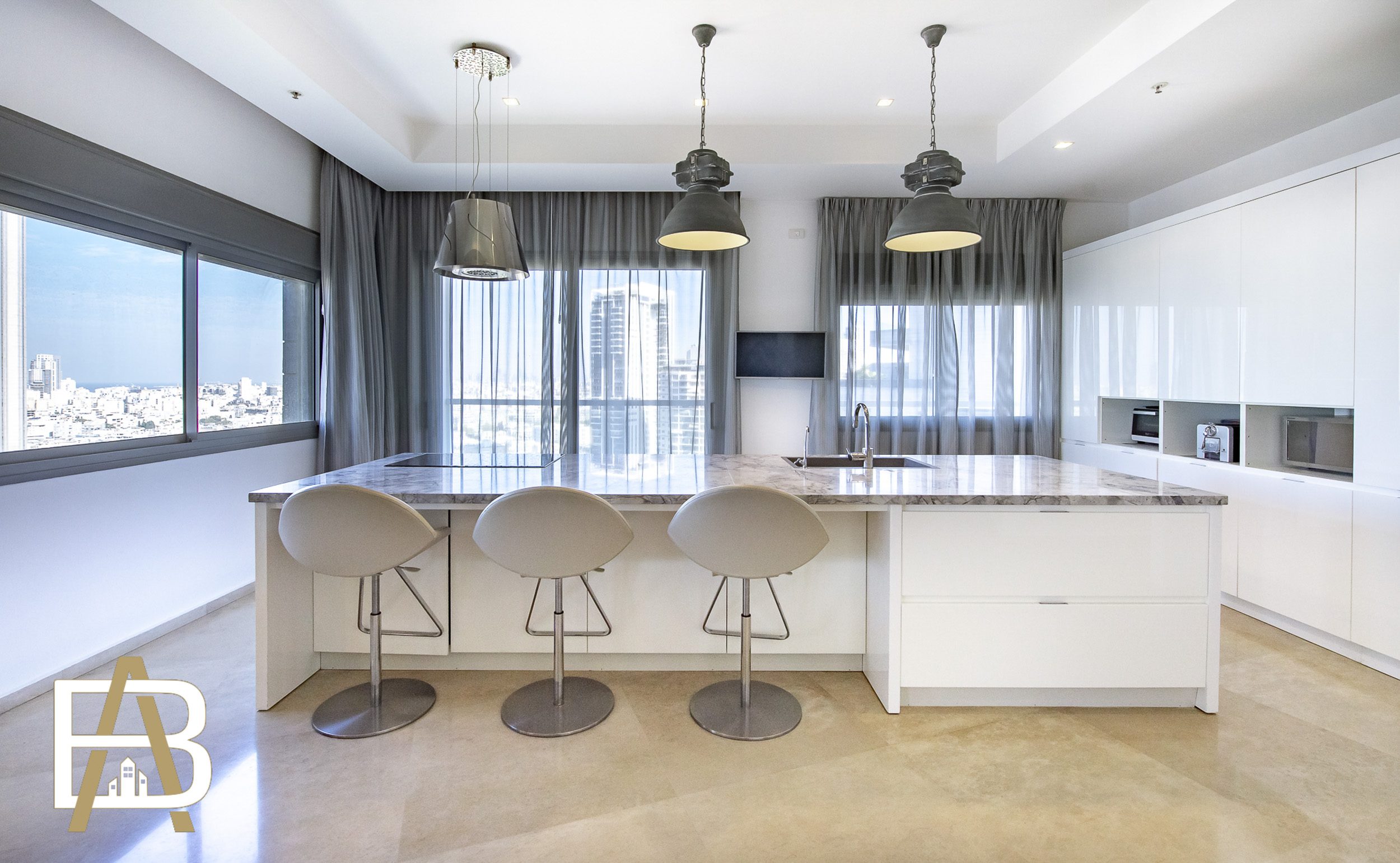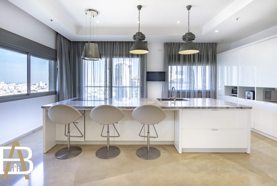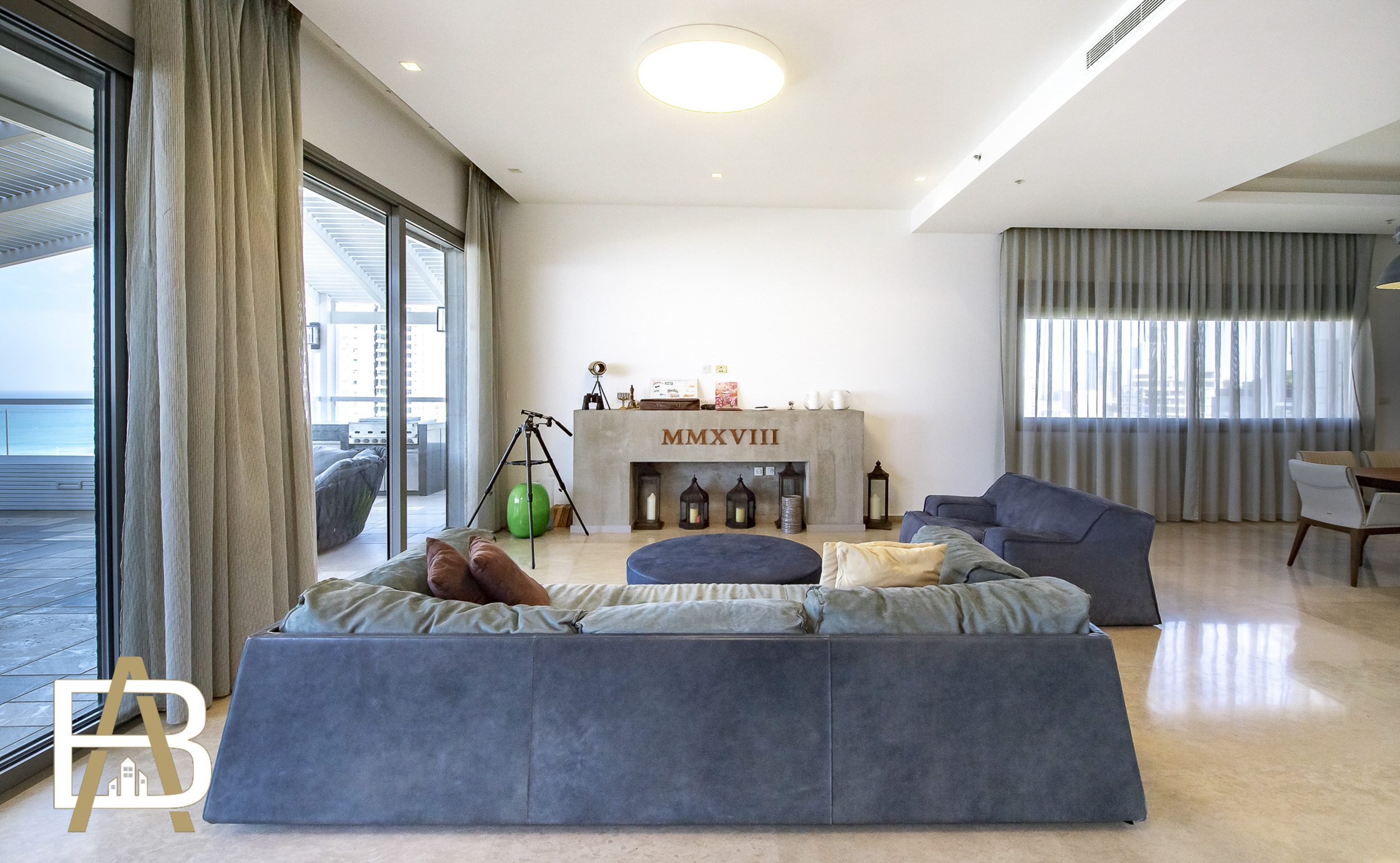 בקו ראשון לים, בקומה 23, פנטהאוז יוקרתי ומרווח עם 6 חדרים בעיצוב ייחודי.